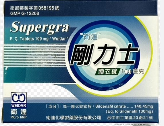 含西地那非(Sildenafil)100 mg,作用機轉、效果與威而鋼一致(PDE‑5 抑制劑)